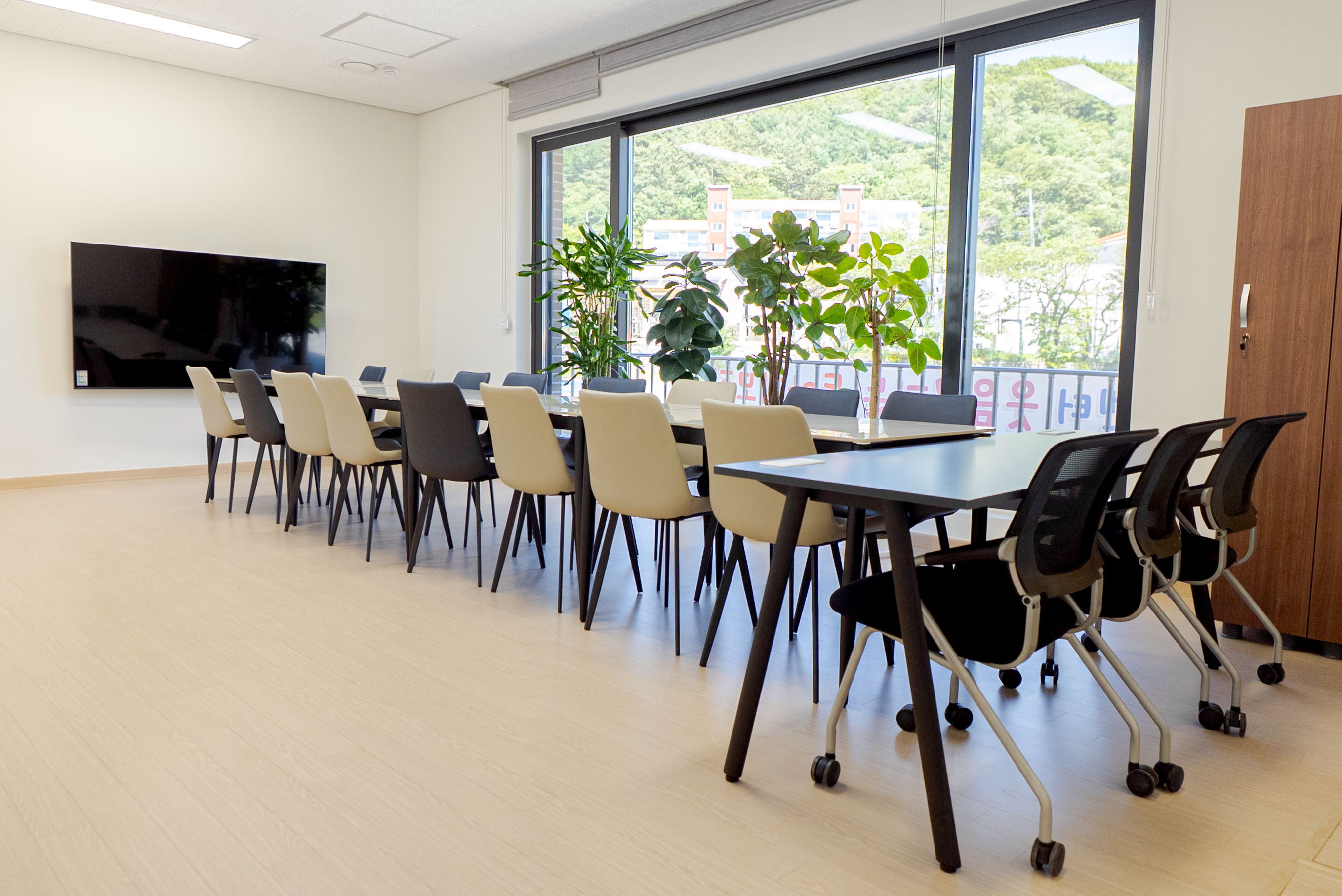 - 책상, 의자 , TV 연결PPT 가능, 화이트 보드 등